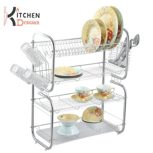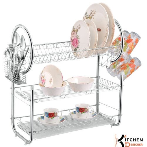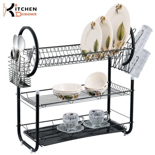 Pro G Shape 3 Tier Dishracks With Draining Tray Cup Holder Spoon Fork Basket Spacious